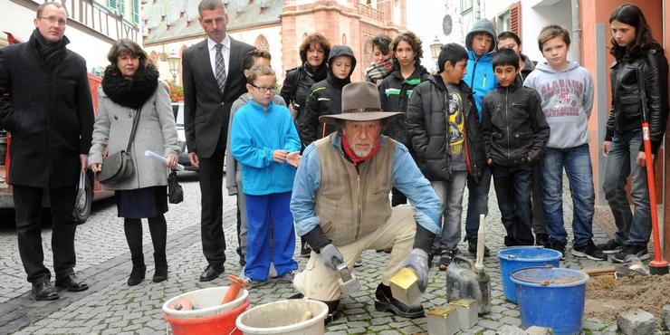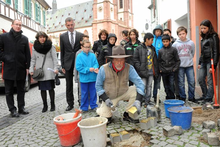 Der Künstler Gunter Demnig wird im Sommer in Geisenheim vier weitere Stolpersteine verlegen – und eine Stolperschwelle, die an Zwangsarbeiterinnen erinnern soll.