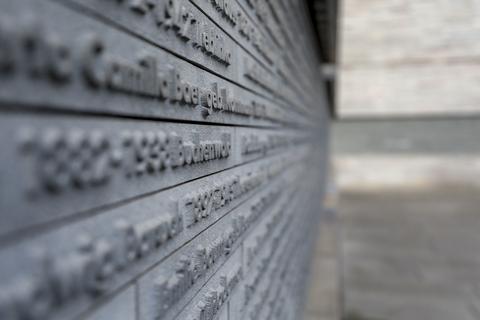 Eine hochgewachsene Frau nimmt sich auffallend viel Zeit vor dem Namenband, auf welchem die Daten aller 1507 jüdischen Opfer des NS-Rassenwahns aus Wiesbaden verewigt sind. „Ich bin Provenienzforscherin. Es ist mein täglich Brot, mich mit dem Schicksal von Menschen jüdischen Glaubens auseinanderzusetzen. Deswegen bin ich hier“, erläutert die Wissenschaftlerin. „Ich finde das hier gut umgesetzt. Es ist halt recht bedrückend, wenn man mittendrin steht. Aber das soll es wahrscheinlich auch sein.“